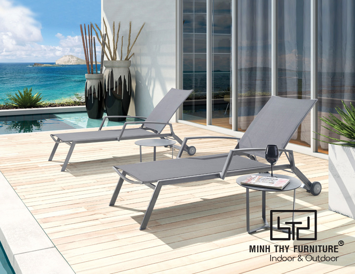 Ghế hồ bơi hợp kim nhôm vải lưới textilene với hình dáng mạnh mẽ, thiết kế sang trọng thích hợp cho nhiều vị trí trưng bày khác nhau. Được các dự án khách sạn, resort đẳng cấp lựa chọn nhờ những ưu điểm nổi bật. Có khả năng thích ứng tốt với nhiều vùng khí hậu khác nhau.